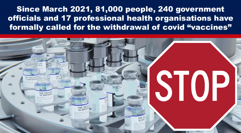 Od března 2021 oficiálně vyzvalo ke stažení kovidových „vakcín“ 81 000 lidí, 240 vládních úředníků a 17 odborných zdravotnických organizací.